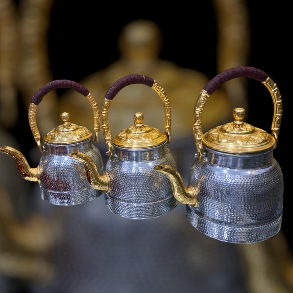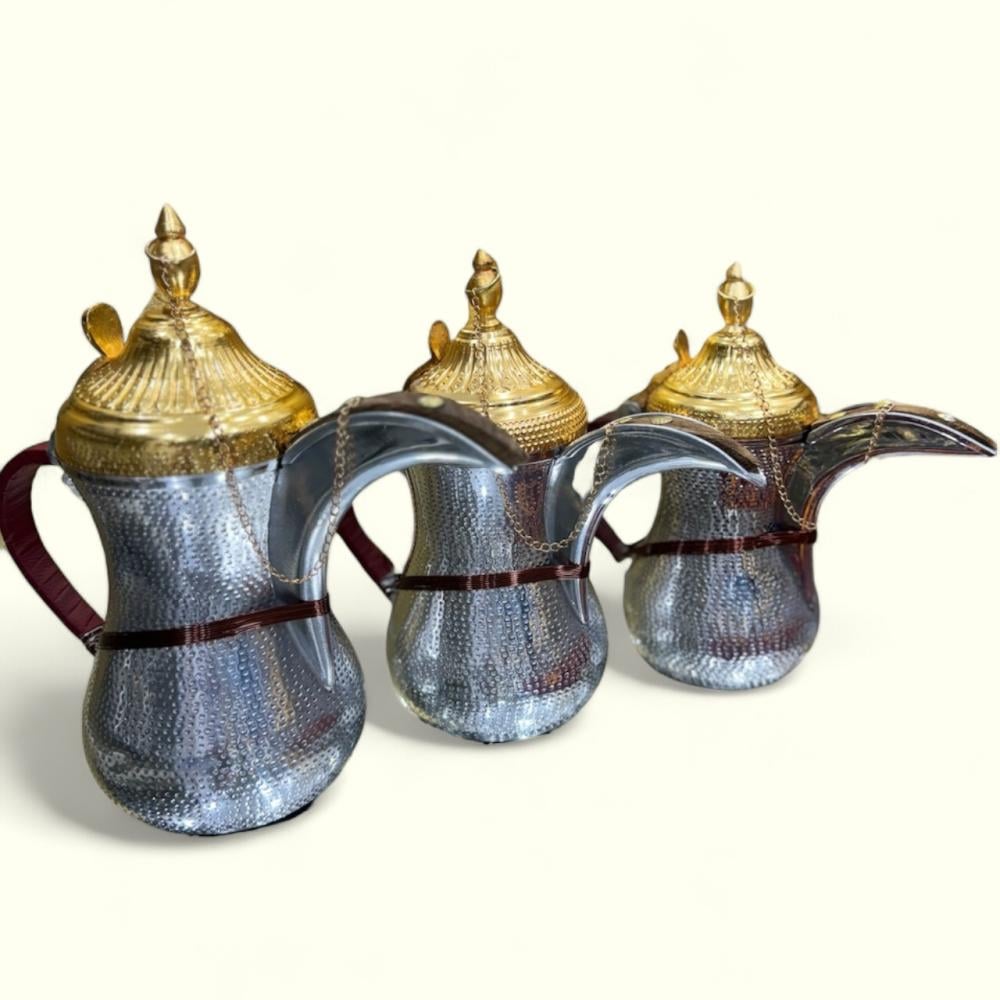 بكج 3دلال المنيوم حب رمان 3 أباريق المنيوم حب رمان 3 بيوز الصناعة سورية النوع المنيوم الشكل حب رمان اللون فضي وذهبي الوزن خفيف